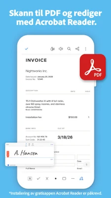 Optimaliser din produktivitet ved å gjenbruke og dele dine digitaliserte dokumenter med uovertruffen enkelhet. Adobe Scan muliggjør kopiering, redigering og gjenbruk av tekst fra skannede kontrakter eller studienotater. Eksporter dokumentene dine til formater som Word, Excel eller PowerPoint, og del dem trygt med kolleger og venner. Integrasjonen med Acrobat Reader lar deg videre kommentere, markere, fylle ut skjemaer og signere dokumenter direkte. For å låse opp et enda bredere spekter av muligheter, inkludert sammenslåing av flere skanninger til én fil og utvidet OCR-kapasitet, tilbyr Adobe også praktiske abonnementsløsninger som forbedrer din digitale opplevelse ytterligere.