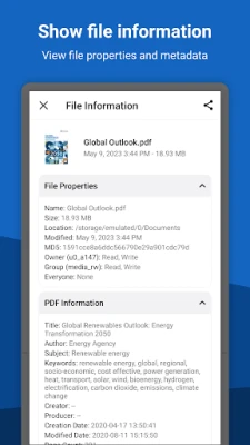 Appen inneholder en intuitiv filbehandler som lar deg enkelt bla gjennom, søke og organisere lagrede filer. Ikke bare kan du vise populære dokumentformater som DOCX, DOC, PDF og PPTX, men du kan også konvertere disse direkte til PDF-format for enkel deling og universell tilgang. Utforsk bildefiler som normalt ikke støttes på Android, inkludert TIFF, SVG og en rekke profesjonelle Raw-formater fra kameraer. Trenger du å pakke ut et arkiv? Android File Viewer takler formater som Zip, 7z og Tar Gzip, og er også en robust leser for e-bøker som EPUB, MOBI og Kindle (uten DRM-beskyttelse). Du kan til og med inspisere og installere APK-filer, samt se detaljert metadata som MD5-sjekksummer og EXIF-data.