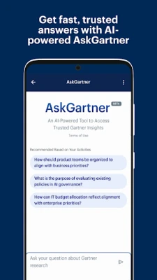 Gartner Mobile App er det essensielle verktøyet for registrerte Gartner-klienter, designet for å styrke dine forretningskritiske beslutninger. Få umiddelbar tilgang til en skreddersydd strøm av innsikt og analyser som nøyaktig reflekterer dine viktigste prioriteringer. Denne personlige tilnærmingen sikrer at du alltid mottar den mest relevante veiledningen, noe som gjør det enklere å navigere komplekse utfordringer og ta raske, velinformerte valg med større selvtillit. Appen transformerer hvordan du samhandler med ledende ekspertise.