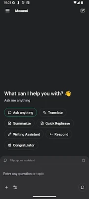 Meomni AI forvandler din tilnærming til produktivitet. Enten du trenger øyeblikkelige svar på komplekse spørsmål, hjelp til å strukturere kreative idéer, eller feilfrie utkast til e-poster og rapporter, er verktøyet klart. Den mestrer alt fra hurtig oversettelse og grundig research til detaljert planlegging og utarbeidelse av tekster på brøkdelen av et sekund. Med intuitiv stemmestyring kan du dessuten interagere håndfritt, noe som frigjør deg til å tenke uten begrensninger.