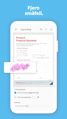 Med Adobe Scan blir mer enn bare bilder fanget – tekst blir levende. Den avanserte OCR-teknologien (Optical Character Recognition) konverterer skannede dokumenter til søkbar og redigerbar tekst, noe som revolusjonerer måten du interagerer med informasjon på. Enten du trenger å hente kontaktinformasjon fra visittkort eller gjøre håndskrevne notater søkbare, gjør Adobe Scan det mulig. Appen gir deg også full kontroll over etterbehandlingen; beskjær, roter, juster lysstyrke og kontrast, og fjern uønskede flekker eller bretter for et plettfritt resultat. Organiser enkelt filene dine i tilpassede mapper, og få umiddelbar tilgang til skanningene dine gjennom automatisk lagring i Adobe Document Cloud.