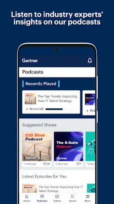 Fremme samarbeid og kunnskapsdeling ved enkelt å dele relevant innhold med teamet og kollegene dine. Dette sikrer at alle er oppdatert på de nyeste trendene og analyserapporter, og bidrar til en felles strategisk forståelse. Gartner Mobile App fungerer også som din inngangsport til kontinuerlig faglig utvikling; utforsk et bredt spekter av ekspertledede webinarer, meld deg på og delta direkte fra én og samme skjerm. Med Gartner Mobile App er du alltid i forkant av utviklingen og kontinuerlig utvider din og teamets ekspertise.