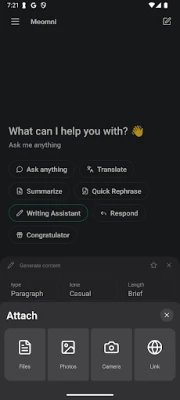 Meomni AI forvandler din tilnærming til produktivitet. Enten du trenger øyeblikkelige svar på komplekse spørsmål, hjelp til å strukturere kreative idéer, eller feilfrie utkast til e-poster og rapporter, er verktøyet klart. Den mestrer alt fra hurtig oversettelse og grundig research til detaljert planlegging og utarbeidelse av tekster på brøkdelen av et sekund. Med intuitiv stemmestyring kan du dessuten interagere håndfritt, noe som frigjør deg til å tenke uten begrensninger.