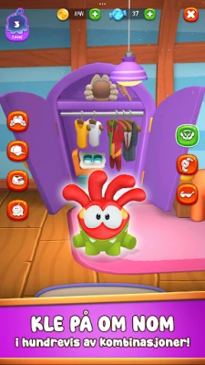 Opplev en rik interaktivitet som strekker seg langt utover det vanlige. Gi Om Nom en personlig stil med et bredt utvalg av påkledningsspill, og forvandle hjemmet hans med tilpassbare romdekorasjoner og en stemningsfull fotovegg. Underholdning er alltid for hånden gjennom fengslende minispill, inkludert det klassiske `Cut the Rope` der fantastiske premier venter. Hold Om Nom glad og se erfaringslinjen hans fylles, slik at han kan stige i nivå. Fullfør daglige oppgaver for verdifulle belønninger og la kreativiteten blomstre med en dedikert fargebok og en avslappende samling Pop It-leker.